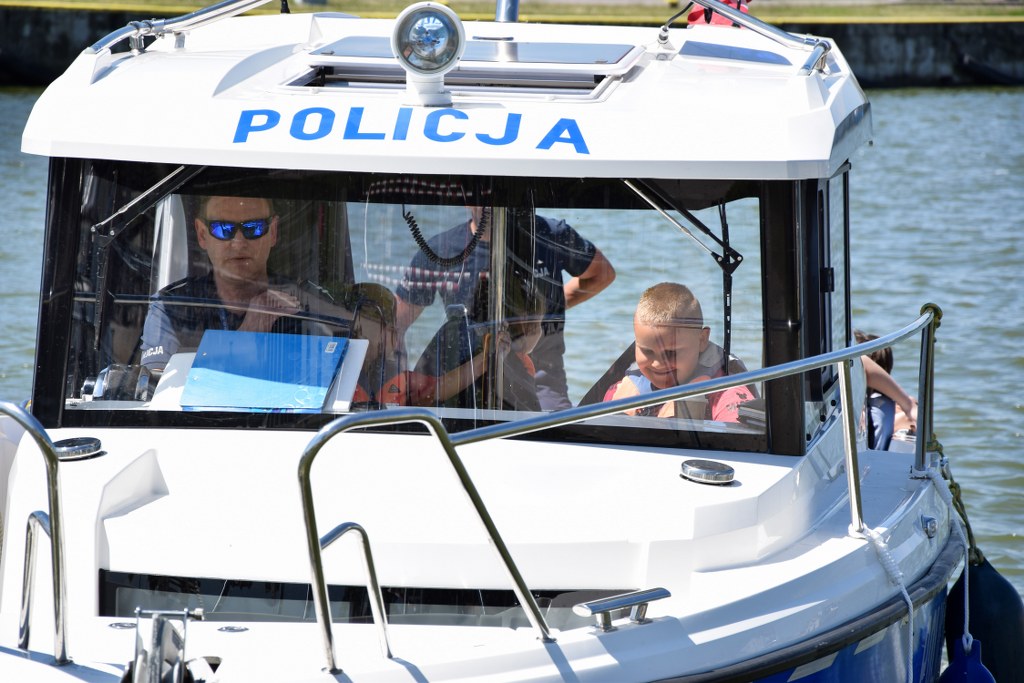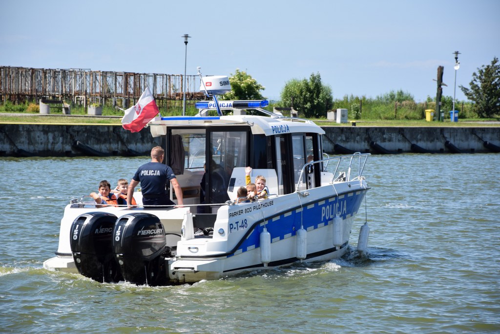 Policjanci spotkali się z dziećmi ze Szkoły Podstawowej w Tolkmicku. Wszystko w ramach działań "KRĘCI MNIE BEZPIECZEŃSTWO NAD WODĄ". Były ćwiczenia praktyczne niesienia I pomocy, czytanka "Na ratunek Poli" i związana z tym pogadanka dot. bezpieczeństwa nad wodą oraz to, co najbardziej ucieszyło dzieci - rejs policyjną łódzią w asyście ratowników morskich.