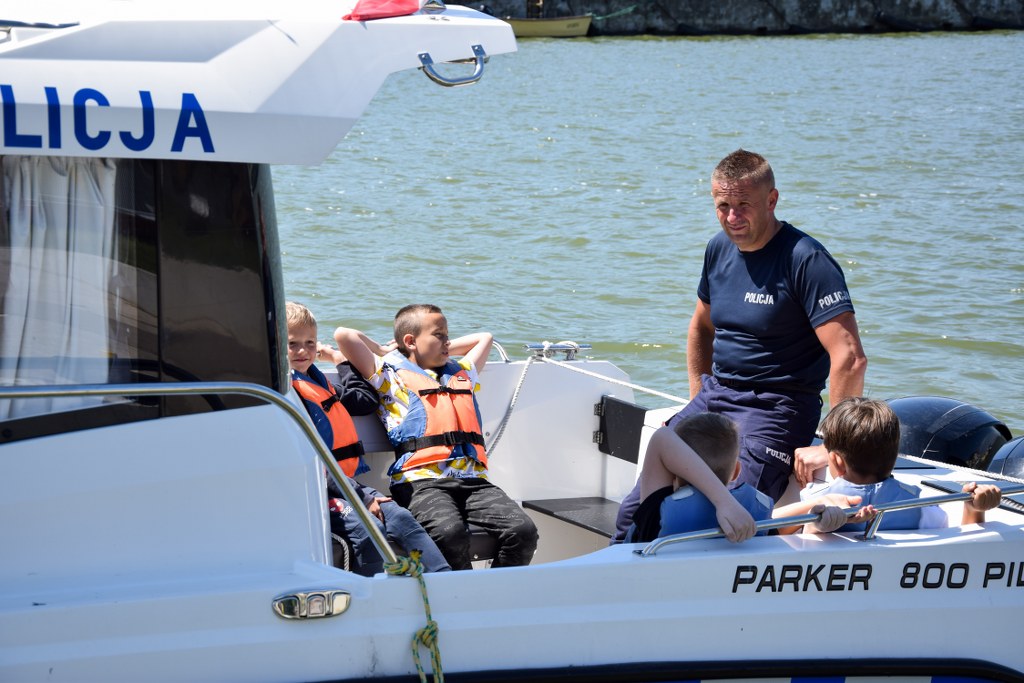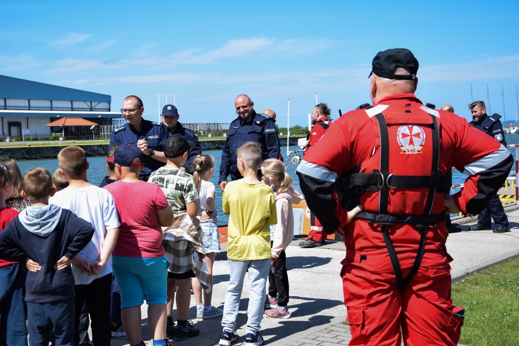 Spotkanie odbyło się w minioną środę (22.06.2022 r.) w porcie w Tolkmicku. W spotkaniu wzięło udział 21 uczniów klasy II szkoły podstawowej. Była to dobra okazja do poznania służby patrolu wodnego policji elbląskiej, a także przepłynięcia się policyjną łodzią patrolową w asyście ratowników morskich z Tolkmicka. Policjanci informowali najmłodszych o zasadach zachowywania się nad wodą, bezpiecznych zabawach oraz o tym, jak należy wezwać pomoc w sytuacji zagrożenia życia i zdrowia. Dodatkowo policjanci przeczytali fragment opowiadania z książeczki „Na ratunek Poli”, a dokładnie opowiadanie na temat bezpieczeństwa nad wodą. Z kolei strażacy z Elbląga przeprowadzili z dziećmi kurs I pomocy z użyciem fantoma.